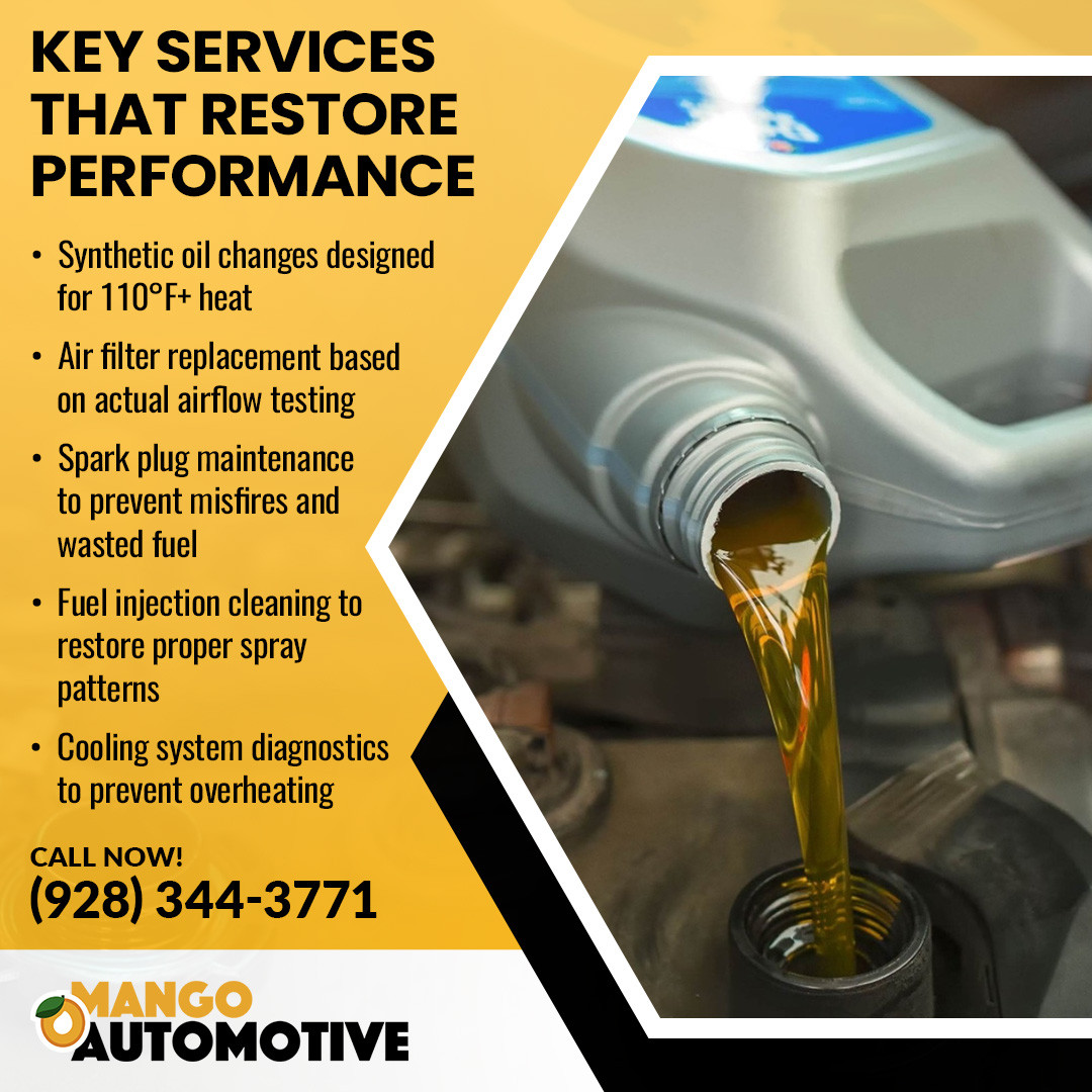 In Yuma, extreme conditions turn routine automotive repair services into essential steps for maintaining engine performance and vehicle reliability. High heat, long distances, and airborne dust demand engine systems that are clean, well-lubricated, and finely tuned. Ignoring these needs leads to lower fuel economy, rising repair costs, and a shorter vehicle lifespan.