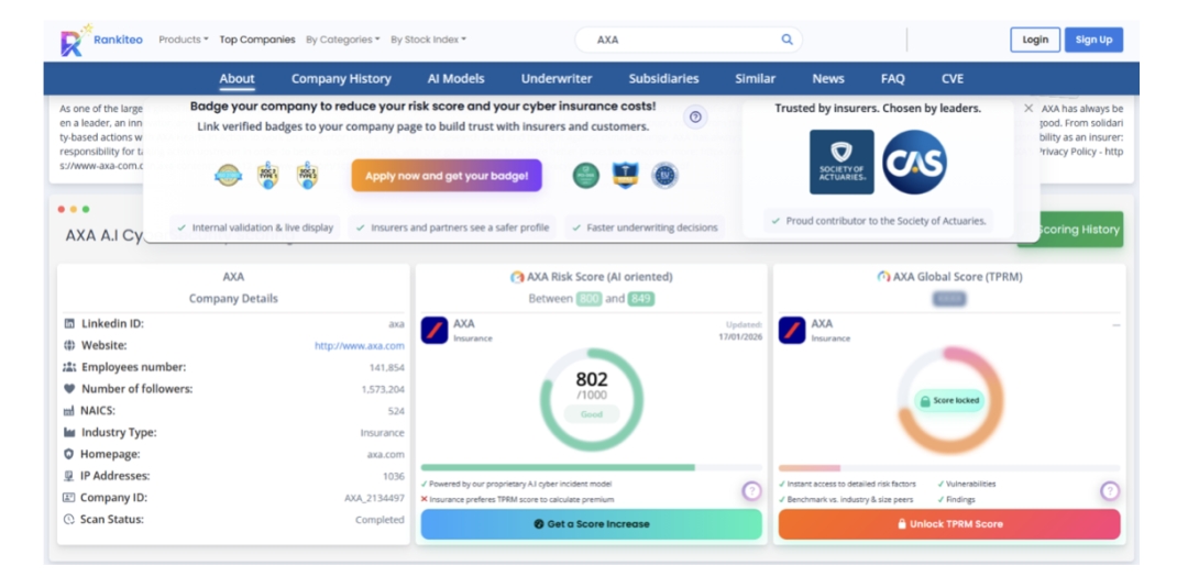Rankiteo has successfully secured the "Pre-Purchase Intent" phase, positioning itself as the "Crunchbase" of the industry. With 1 million public company profiles and 4 million comparison pages, the platform is now the primary destination for CISOs and CFOs evaluating their risk posture before they ever speak to a broker.